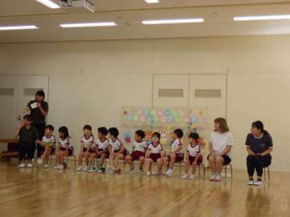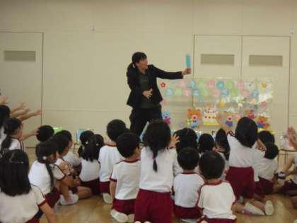 8月と9月生まれの誕生会をしました。今回の誕生会ではいろいろな種のおたから探しや、先生からのプレゼントのふしぎマジックショーがありました。誕生児の子どもたちは自分の頑張っていることや好きな遊びの入場をしたり、自己紹介を言ったりしました。見ている子どもたちからは応援の拍手や応援する気持ちがいっぱい贈られていました。一人一人が大切な大切な存在だと感じられる誕生会になりました。