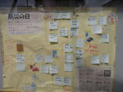 8月、9月に保護者に家庭での防災対策について書いてもらいました。モバイルバッテリー、水の確保、避難先の共通理解など、貴重なご意見をたくさんいただけました。