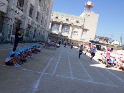 5歳児が姫島小学校6年生の体育の授業を見に行きました。ラジオ体操も真似をしがら一緒にしました。リレーも近くで見せてもらいスピードや迫力を感じていました。「かっこよかった」「速かったし楽しかった」と喜んでいました。実際に見ることで刺激を受け、小学生への憧れの気持ちにつながったように感じました。今後も小学校と連携をとりながら教育を進めていきたいと思います。