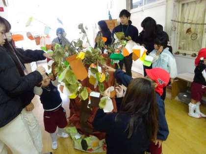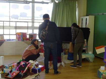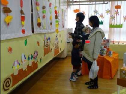 作品展がありました。子どもたちが一生懸命につくった作品や伸び伸びとかいた絵が、幼稚園の中にいっぱい飾られました。今日はその作品や絵をお家の方に見てもらって子どもたちはとても嬉しそうな様子でした。これからもつくったりかいたり、いろいろな表現遊びを楽しんでいきたいと思っています。本日はありがとうございました。