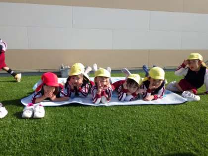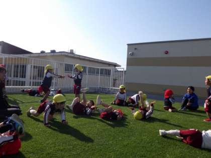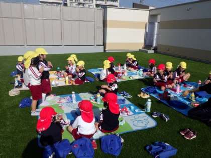 3歳児はな組と4歳児ほし組が一緒に遊戯室の屋上でお弁当を食べました。今日は12月なのにとても日差しが温かく屋上はポカポカでした。お弁当の後はみんなで気持ちのいい人工芝の上でゴロゴロ転がったり、絵本を読んだり気持ちもポカポカになって楽しく過ごしました。これからも園内の環境を生かした保育を工夫したり、異年齢で関わる活動を考えたりしていきたいと思います。