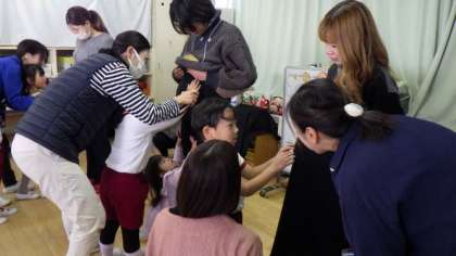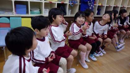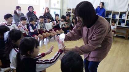 そして、子ども達がお母さんに質問をしました。「赤ちゃんはお腹の中でけがするの?」「動くの?」「どうやって大きくなるの?」など、たくさんのことを教えてもらいました。最後に優しくお腹を触らせてもらいました。緊張した表情でそっと触らせてもらい、「ドキドキした」「温かかった」と話していました。