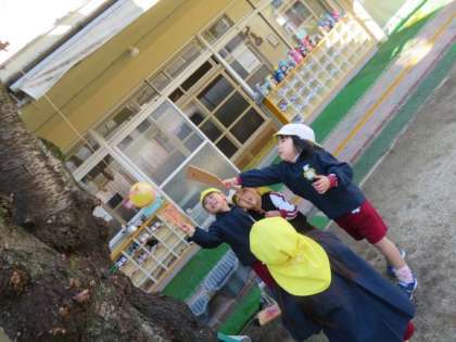 風がとても寒く感じる日でしたが、子どもたちは元気いっぱいに園庭で遊びました。子どもたちの様子を紹介します。
