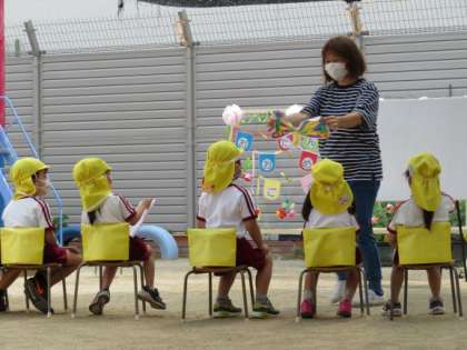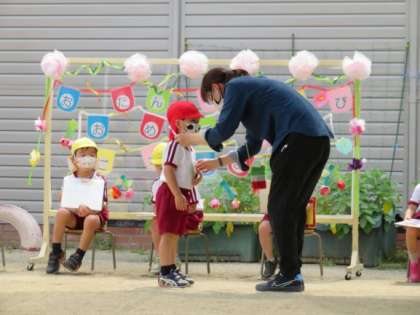 5月生まれの子どもたちは、フープや縄跳び、スケーター、バイク、走るなど自分の好きな遊びや見てほしい遊びで入場しました☆自己紹介では、誕生日のお友達の名前や好きな食べ物、大きくなったら何になりたいかなどを聞き、温かい拍手でお祝いしています。「はらぺこあおむし」のパネルシアターを見たり、みんなで体操をしたりして全園児で楽しみ、誕生日のお友達をお祝いしました。次は6月生まれの誕生会です。これからも一人一人の大切なお誕生日をみんなでお祝いしていこうと思います。
