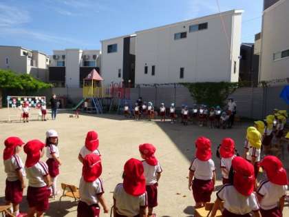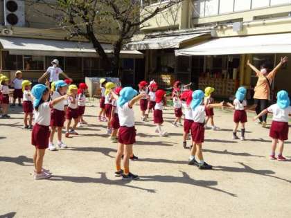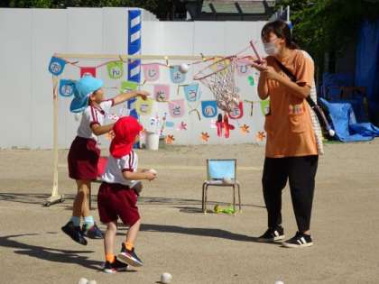 気持ちのよい青空の下、園庭で誕生会を実施しました。誕生児はたくさんの友達や教職員に「おめでとう!」と言われ、恥ずかしそうにしながらも笑顔いっぱいの会となりました。玉入れをしたり、ダンスをしたりして体を動かす楽しさも感じることができる取り組みでした。誕生日を祝ったり、祝ってもらったりする中で、一人ひとりが大切な存在であることを伝えていくことができるようにしていきたいと思います。