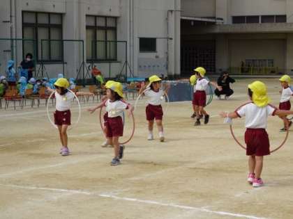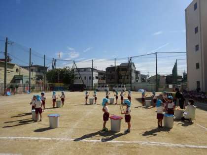 姫島小学校の校庭で、運動会の予行を実施しました。天気も良く、他のクラスの遊びを見たり、応援をし合ったりして楽しく過ごしました。予行が終わったあと子どもたちに、みんなで遊んでどうだったかを聞くと「楽しかった。うれしかった」と笑顔で話してくれました。運動会当日を心待ちにしていることが伝わってきます。当日もいい天気の中で開催できることを願います。