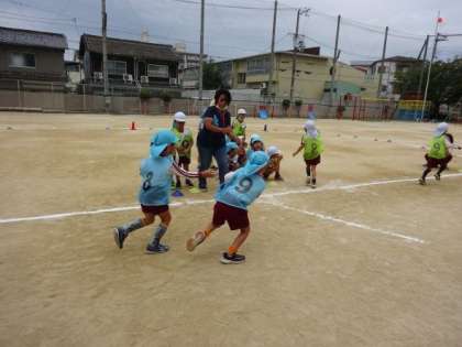5歳児の姿が日に日に変わってきました。今日はリレーの途中でこけてしまった友達もいましたが、走ったあと「すぐに立ったやろ。なんでかわかる?」と言われました。なぜか聞き返すと「早く立って走らないとコレ(バトン)渡せないから」と言いました。リレーは一人ではできません。みんなの力がつながってこその取り組みです。気持ちや力を一つにする心地よさを存分に感じながら楽しんでほしいと思います。