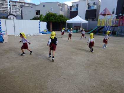 運動会を経て、走ることが楽しくなってきたようです。今日はしっぽとりをして遊んでいました。編んだ三つ編みを後ろにつけて走ります。遊び方は5歳児が4歳児や3歳児に教えていました。しっぽを取っても取られても楽しいようで、何度も繰り返し遊んでいました。異年齢でかかわりながら遊ぶ姿を嬉しく思います。やさしくしたり、やさしくされたりすることで、やさしさのバトンが繋がっていくといいですね。