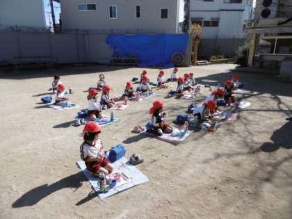 心地よい日差しのもと、3歳児が園庭でお弁当を食べました。「美味しい!うれしい!」と言いながら、笑顔でお弁当を食べていました。毎日作ってくださるおうちの方のお弁当はとてもうれしいもので、子どもたちの食べっぷりや笑顔から伝わります。日々、お忙しい中ありがとうございます。様々な人の支えを通して、食べ物が自分の健康な体をつくっていることを子どもたちに知らせていきたいと思います。