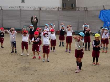 少しずつ寒くなってきましたね。今日は園庭で遊ぶ前に全園児でダンスをすることで、少し体を動かしてから遊ぶようにしました。寒くなるとどうしても体が動きにくくなります。安全面からも体を温めてから活動できるよう取り組んでいきたいと思います。