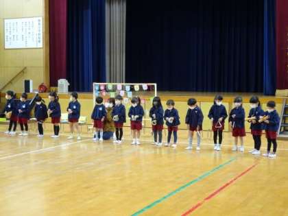 お誕生日おめでとう 公開日 2022/12/13 更新日 2022/12/13 保育の様子 12月の誕生会をしました。今月は誕生児が大きなプレゼントを運んで遊んだり、5歳児が楽器遊びを見せてくれたりしました。会の終了後、誕生児と話す中で「ドキドキした」「楽しかった」など感じたことを伝えてくれました。みんなにお祝いしてもらう喜びや、お祝いする嬉しさを毎月の会で大切に取り組んでいきたいと思います。 いいね(0)