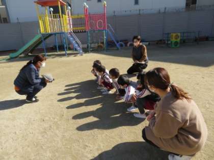 本園では、預かり保育時の避難訓練も実施しています。今日は火事を想定しての訓練をしました。保育室が変わることで避難の仕方も変わりますが、子どもたちは落ち着いて行動していました。毎月の避難訓練の積み重ねだと感じます。幼稚園では子どもたちの安全を第一に保育をすすめています。いろいろな想定で、今後も取り組んでいきたいと考えています。
