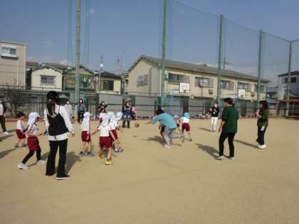 やったー! 公開日 2023/03/10 更新日 2023/03/10 保育の様子 遊戯室工事の関係で園庭が使用できないため、園庭開放を第2グラウンドで実施しました。5歳児は朝から「今日園庭開放スペシャルうれしい!」「やったー!」と楽しみにしていました。ドッジボールは保護者の方も参加され、子どもたちもうれしそうでした。保護者の皆様ありがとうございました。 いいね(0)