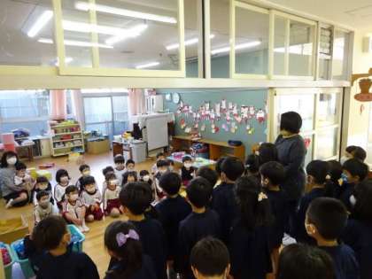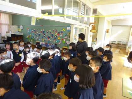 ありがとうの気持ちを込めて 公開日 2023/03/15 更新日 2023/03/15 保育の様子 5歳児が3歳児、4歳児や教職員にお世話になった感謝の気持ちを伝えていました。3歳児は手を振ったり、4歳児は感謝の気持ちを言ったりしていました。1年間楽しく遊ぶことができてうれしかったねと話していました。5歳児の子どもたち、やさしくかかわってくれてありがとう。 いいね(0)