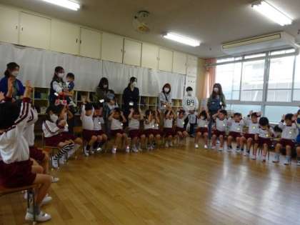 5歳児はグループで相談したり、友達の考えを聞いたりする活動をしました。4歳児は絵本の読み聞かせや手遊びをしました。ゆっくりお子さんの様子を見ていただきたいと考え、2日間に分けて保育参観を実施しました。保護者の皆様にはご理解、ご協力いただきましてありがとうございました。幼稚園に来ることを楽しみにできるよう、環境も整えて保育をすすめていきたいと思います。