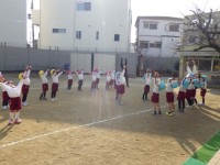 3歳児がこいのぼりのおなかをトンネルのように通って遊びました。「もう一回する?」と聞くと「うん!」と言い、うれしそうに何度も繰り返し遊んでいました。このような遊びを通して季節や伝統を感じていくことができるように取り組んでいきたいと思います。