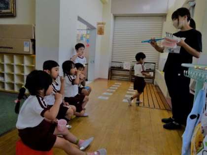 幼稚園には子どもたちに人気のはーこちゃんがいます。はーこちゃんは毎日弁当後に、子どもたちと歯磨きをします。曲に合わせて磨いていますが、毎日取り組むことで丁寧に取り組む姿が見られるようになってきました。はーこちゃんは養護教諭が教材を工夫し取り組んでいます。歯の大切さを知り、自分で磨けるように継続していきたいと思います。