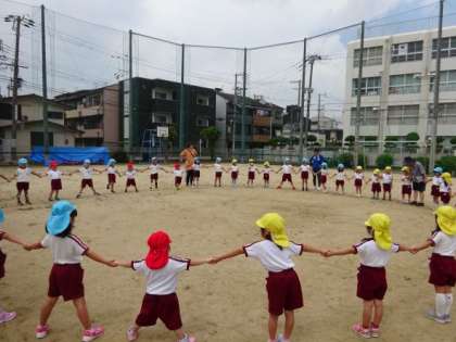 夏はやっぱり盆踊り! 公開日 2023/07/03 更新日 2023/07/03 保育の様子 全園児で盆踊りをしました。普段のダンスは好きな場所ですることが多いのですが、今日は円になって踊ることで、子どもたちも喜んでいました。同じ方向を向き前へ進みながら踊ることも5歳児が教えてくれていました。夏の風物詩でもある盆踊りを、地域の方と一緒にできる機会をうれしく思います。いろいろな盆踊りを楽しんでいきたいと思います。 いいね(0)