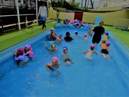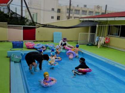 どの学年もプール遊びを喜ぶ姿が増えました。「もっと入りたい」「明日もある?」と言う子どもたちが多くなりうれしく思います。遊び方にも日々変化が見られます。シャワーを怖がることなく入る姿や、水しぶきがかかってもうれしそうに笑うなど、日々の積み重ねが感じられます。今年度は天気にも恵まれています。残り数回ですが楽しいプール活動ができるよう取り組んでいきたいと思います。