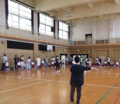 地域の講師の方に来ていただき、盆踊りを親子で教えてもらいました。