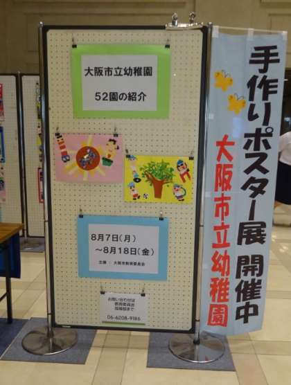 大阪市立幼稚園ポスター展が8月7日(月)〜18日(金)まで大阪市役所1階で開催します。52園のポスターが展示され、姫島幼稚園もあります。お近くにお越しの際はお立ち寄りください。各園の特色がわかる素敵なポスター展ですよ。