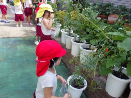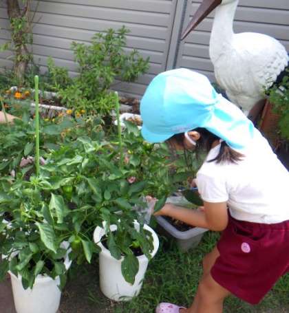 たくさんの野菜ができていたので、預かり保育に来ていた子どもたちと収穫しました。