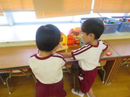 3歳児は、ままごと遊びや人形遊びをしながら、友達と少しずつやりとりをするようになりました。