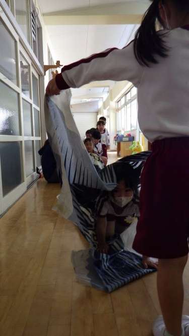 4歳児は、こいのぼりトンネルでたくさん遊びました!「並んでいる間はこいのぼりの歌を歌う」という可愛らしいルールもできていました。