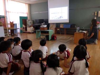 9月1日は「防災の日」です。園では「津波」の話をしました。津波の写真を見ながら、子どもたちと津波の避難の仕方について考えました。