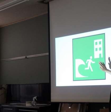 「津波避難場所」のピクトグラムに見覚えがある子どもが多いことに驚きました。