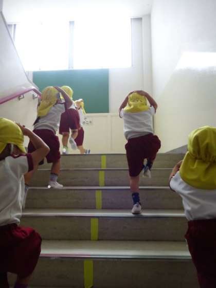 地震のあと津波がきたことを想定した避難訓練を実施しました。子どもたちは幼稚園から姫島小学校4階まで避難をしました。9月1日の防災の日に津波の話をしていたこともあり、高いところに逃げる必要性を感じているように思いました。保護者の皆様もすぐにお迎えにきてくださりありがとうございました。ご家庭でもこの機会に安全に関する話をしていただけるとうれしいです。