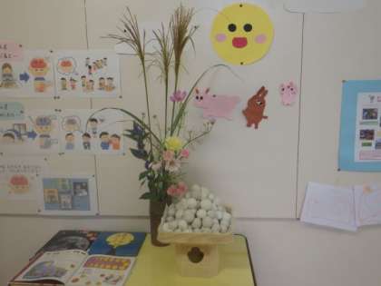 明日は今年の十五夜(中秋の名月)です。今日は子どもたちと粘土でお月見団子をつくって、お花と一緒にかざりました。十五夜は1年で1番きれいなまんまるの満月が見える日です。明日の夜はご家族で夜空を見上げてみてください。晴れますように!
