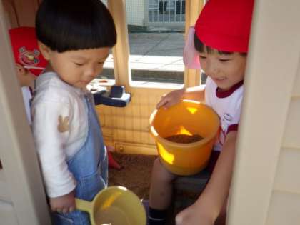今日はハッピーランド(未就園児活動)がありました。就園前のお友達がたくさん遊びにきてくれました。幼稚園の子どもたちは年下の友達に優しく関わったり、一緒に遊んだりする様子がたくさん見られ、とても微笑ましい時間になりました。地域の身近な人と触れ合う経験を通して相手の気持ちに気付いたり、優しさや思いやりの気持ちが育まれています。