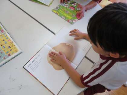 自分が好きな絵本を見つけて、じっくり読んでいます。