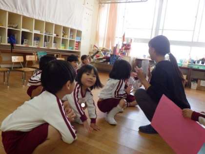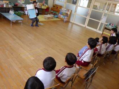 3歳児に和式トイレの使い方について保健指導をしました。