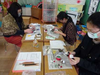 成人保健委員会主催でアレンジメントや写真立てをつくりました。参加された保護者の皆さんは配置や色の組み合わせを考えながら、とても楽しそうに取り組まれていました。子どもたちの作品と同じで、同じものがなく本当に素敵でした。保護者の方も話をされながら取り組んでおられ有意義な時間となりました。ありがとうございました。