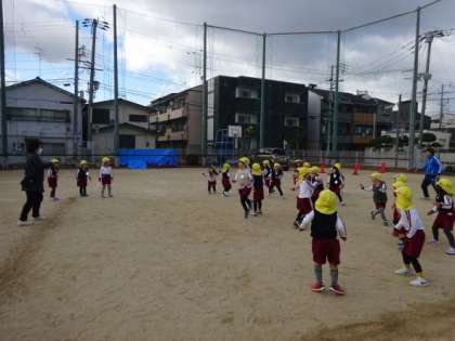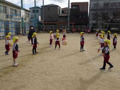月1回、外部講師に体を動かす遊びを教えていただいています。今月はボールを使った遊びで、4歳児は友達とボールの受けあいや1面ドッジボールをしました。3歳児はボールおにごっこをしました。身近な用具、遊具を使って楽しく教えていただけるので子どもたちも喜んでいます。寒さが厳しくなる季節ですが、戸外で体を動かして遊ぶ時間を大切にしていきたいと思います。