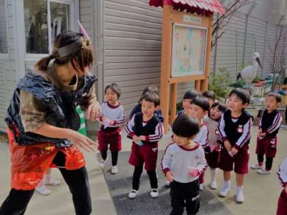 2月3日は節分ですね。幼稚園では豆まきをしました。4歳児は豆まきの前に、自分の心の中にはどのような鬼がいるのかを考えていました。「怒りんぼ鬼かな」など友達と話しながら豆まきをしていました。伝統行事の意図や意味を子どもたちに知らせることも大切にしながら保育をすすめていきたいと思います。