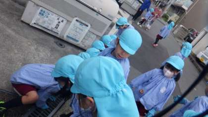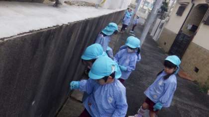クリーンアップ作戦で5歳児そら組が幼稚園の周りを、みんなで掃除しました。枯れ葉やペットボトル、吸い殻など道にはたくさんゴミが落ちていて、それをみんなで拾いました。きれいになった様子を見た子どもたちは「気持ちよくなったね!」と嬉しそうでした。ゴミをポイ捨てしてはいけないことなど、今日の経験を通して子どもたちは感じたと思います。