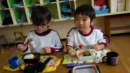 お弁当を食べる時も、正しい持ち方を意識している姿が見られ、「トマトつかめるよ!」と嬉しそうに話していました。