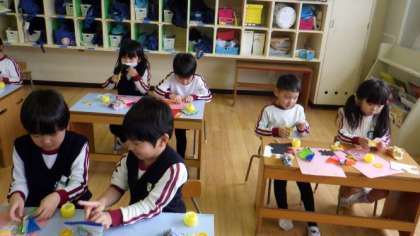 幼稚園にひな人形を飾っています。そのひな人形を子どもたちは毎日見たり、クラスでおひなさまをつくったり、歌を歌ったりすることを楽しんでいます。ひな祭りの歌「うれしいひなまつり」は4番まであるのを知っていますか?昔から歌い継がれている歌なので、なんとなく知っていますよね。幼稚園では歌の歌詞をイメージしながら楽しんで歌っています。お家でも4番まで歌ってみてくださいね!