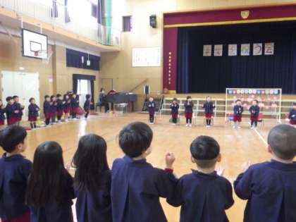 3月の誕生会がありました。今年度、幼稚園全員が誕生会をすることができました。子どもたちは誕生会を通して、祝ってもらったり友達を祝ったりする中で『誕生』の喜びを味わい、一人一人が大切な存在であることを、その子どもなりに感じるようになっていきます。これからも毎月の誕生会が子どもたちにとって、大切な時間になるよう内容を工夫し考えていきたいと思っています。