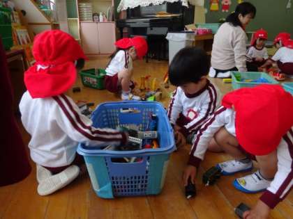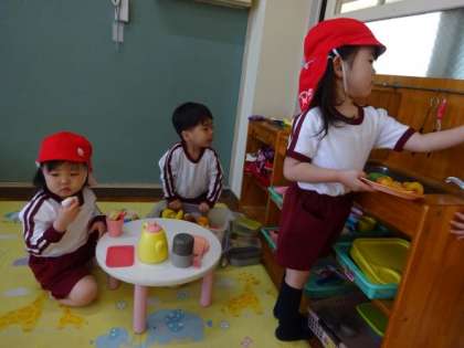 新入園児にとって初めての園生活がはじまりました。家でも遊んでいるようなおもちゃを置いておくことで安心して遊べるようにしています。ままごと、電車、おえかきと好きな遊びを見つけて遊んでいました。いろいろな遊びを楽しむことができるように環境を整えていきたいと思います。