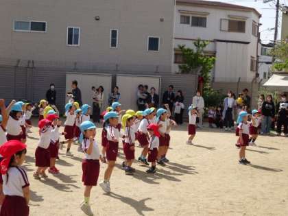 今年度初めての保育参観がありました。朝の用意をする様子や、園庭で遊ぶところ、全園児で歩いたり体操をしたりするところを保護者の方にみていただきました。春の自然に触れて遊んだり、自分の好きな遊びを見つけたり、友達と一緒に伸び伸びと活動したり、幼稚園での子どもたちの姿を見ていただく良い機会になりました。子どもたちはお家の方に見てもらって、とても嬉しそうでした。参観にご参加いただきましてありがとうございました。