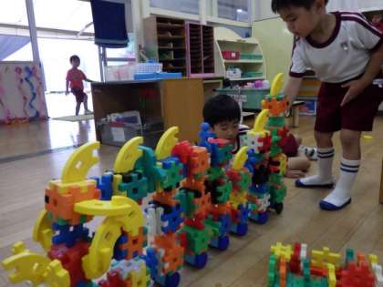 今日は、幼児期の終わりまでに育ってほしい10の姿の【協働性】についてお知らせします☆子どもたちは友達と関わって遊ぶ中で互いの思いや考えを自然と共有して遊んでいます。共通の目的の実現に向けて考えたり、工夫したり、協力したりする中で友達と一緒にやり遂げる充実感を感じていき、いろいろな人と力を合わせる喜びや楽しさを感じて過ごしています。楽しそうと思ったことを一緒にする楽しさを感じることも協働性の育ちにつながる姿です。幼稚園で友達と過ごしているからこその育ちを今後も大切に保育していきたいと思います。
