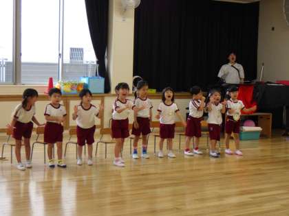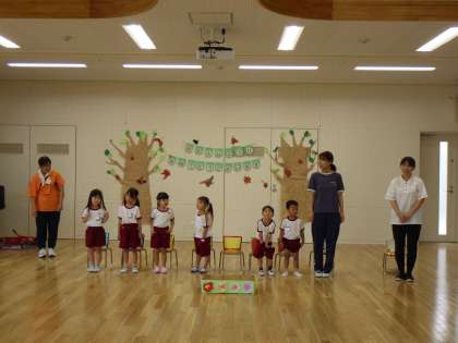 誕生会をしました。誕生児は「うれしい!」と、みんなにお祝いしてもらう喜びを感じていました。手遊び歌を歌ったり、ボール運びをしたりして楽しい時間を過ごしました。1年に1回の誕生会を通して、一人一人が大切な存在であることを知らせていきたいと思います。
