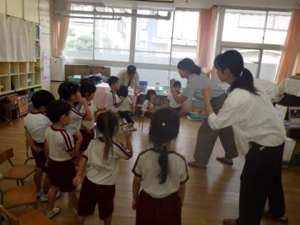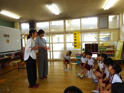 4歳児を対象に、区役所の方が健康教育や絵本の配布を行う「4歳児訪問事業」を実施し、歯についてのお話や絵本を読んでいただきました。