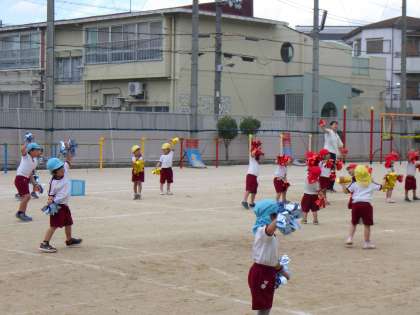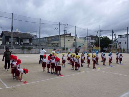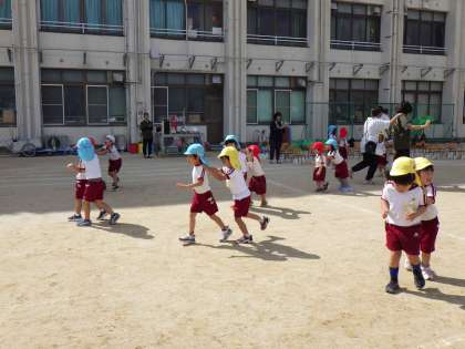 小学校で運動会ごっこをしました。広い場で体を動かしている姿はとても楽しそうでした。運動会を通して、友達と気持ちを合わせて応援したり、されたりする喜びを感じてほしいと思います。異年齢でのダンスは笑顔がいっぱいで、うれしい時間となりました。