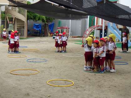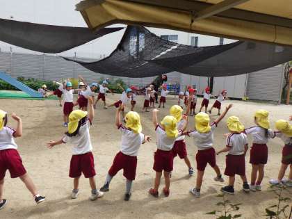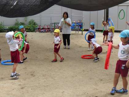 今日は4歳児の運動会の遊びを、全園児で遊びました。色遊びや輪で遊ぶことを喜んでいました。ダンスも普段からよく見ていたようで、子どもたちは楽しんでいました。違うクラスの遊びを一緒にすることで、遊びも共有することができます。明日からも運動会の遊びの続きを楽しんでいきたいと思います。
