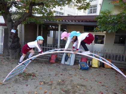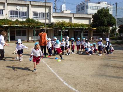 大和田幼稚園に遊びに行きました。一緒に歌を歌ったり、あたたかな日差しの中で遊んだりして楽しく過ごすことができました。同じ地域に住む友達が増えて、子どもたちも喜んでいました。幼少期にたくさんの人と関わることで、コミュニケーション力も高まります。人を知り、人とのつながりを大切にできるように育てていきたいと思います。